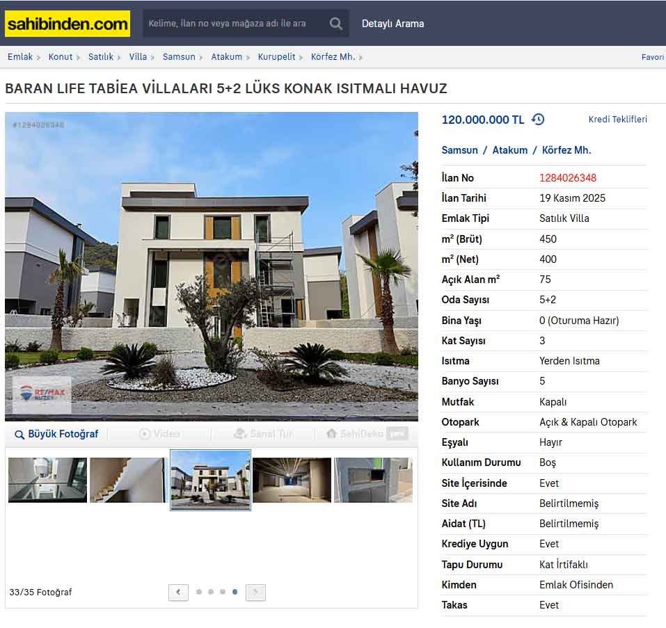 Samsun Büyükşehir Belediye Başkanı Halit Doğan'ın, şehirde faaliyet gösteren Baran İnşaat tarafından hayata geçirilen Baran Life Tabiea projesinden bir villa satın aldığı iddiaları, kentin gündemine oturdu. İlk olarak kamuoyuna 52 milyon TL'ye alındığı yansıyan villanın, emlak platformlarında 120 milyon TL fiyatla satışa sunulduğu ortaya çıktı.