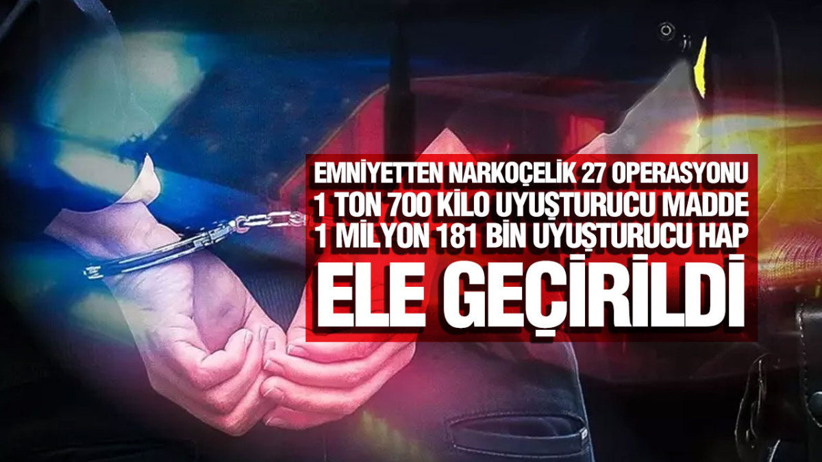 Operasyonlarda 1 ton 700 kilogram uyuşturucu madde ve 1 milyon 181 bin uyuşturucu hap ele geçirildi.