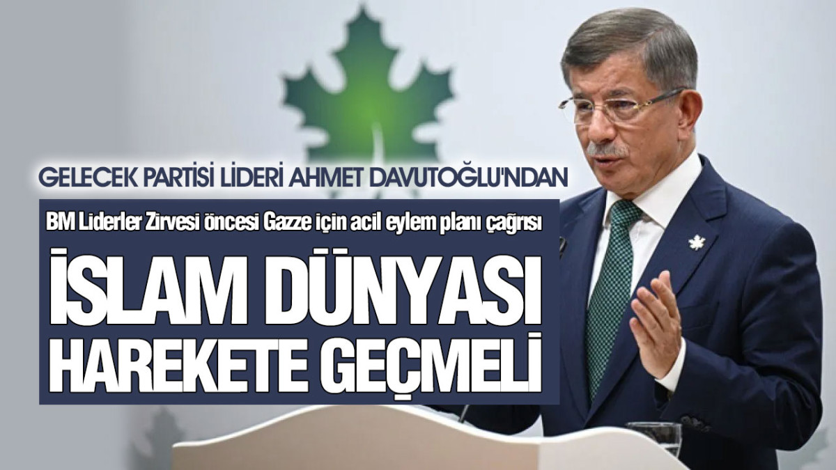 Gelecek Partisi lideri Davutoğlu, BM Genel Kurulu Liderler Zirvesi öncesinde İslam Dünyası’na ve uluslararası topluma acil bir eylem planı çağrısında bulundu. Davutoğlu, İsrail’in Gazze ve Batı Şeria’da sürdürdüğü saldırılara karşı somut adımlar atılması gerektiğini vurguladı.