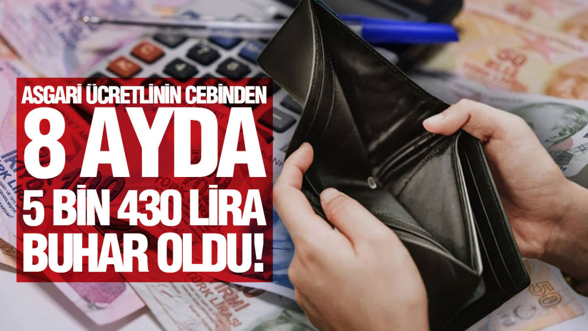 TÜİK'in açıkladığı ağustos ayı enflasyon verilerine göre, asgari ücretli çalışanların maaşları 8 ayda 5 bin 430 lira değer kaybetti. Yılbaşından bu yana enflasyon karşısında eriyen maaşlar, ara zammın yapılmamasının etkisiyle hızla düşüş gösterdi.