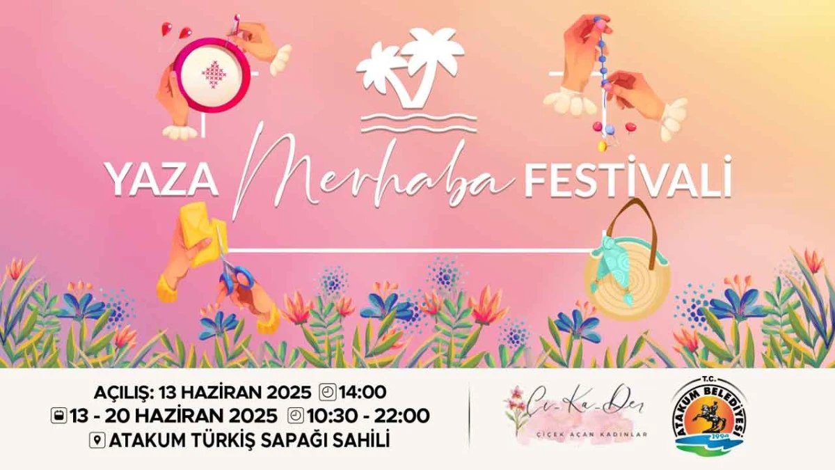 Atakum Belediyesi ve Çiçek Açan Kadınlar Derneği iş birliğinde Atakum Sahili’nde ‘Yaza Merhaba Festivali’ düzenleniyor. Samsun genelindeki girişimci kadınların el emeği ürünlerinin sergileneceği program, 13 Haziran Cuma günü saat 14.00’te vatandaşlarla buluşacak. Bir hafta sürecek organizasyon, 20 Haziran Cuma günü sona erecek.