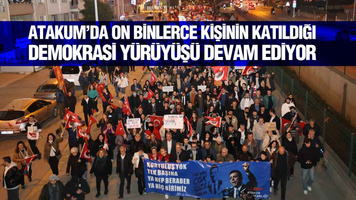 İstanbul Büyükşehir Belediye Başkanı Ekrem İmamoğlu'nun tutukluluğu devam ederken, Atakum’da İmamoğlu’na destek olmak isteyen on binlerce kişi, günlerdir demokrasi nöbeti tutuyor. Atakum Sahilinde dev Türk Bayrağı açan vatandaşlar, ‘hak hukuk adalet’ sesleriyle ülke gündemindeki adaletsiz uygulamalara tepki gösterdiler.