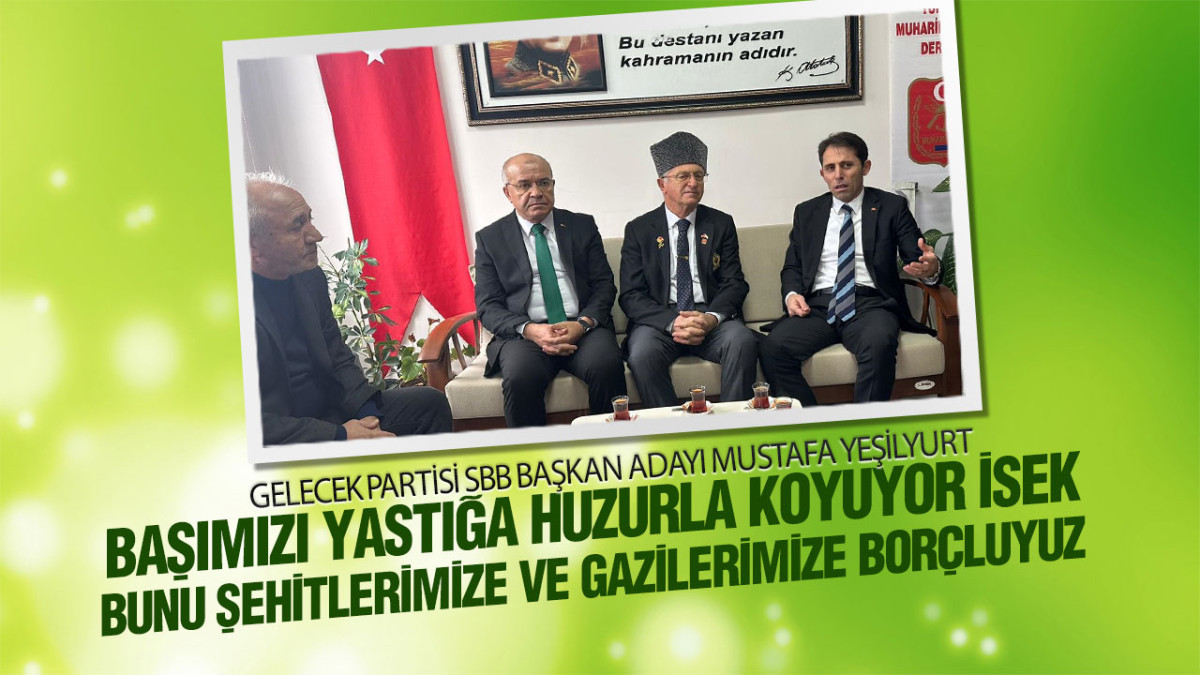 Kendisinin 'Kıbrıs Gazisi' bir babanın evladı olduğunu belirten Gelecek Partisi Samsun Büyükşehir Belediye Başkan Adayı Mustafa Yeşilyurt, şöyle konuştu: "Vatanımızın bütünlüğü, milletimizin bağımsızlığı için göğsünü siper etmiş, al bayrağımızın dalgalanması için canını feda eden şehitlerimizi rahmet ve saygıyla anıyor ve minnet duyuyorum. Bugün hayatta olan gazilerimize sağlıklı ömür diliyorum."