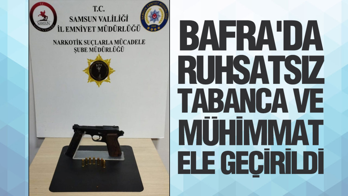 Samsun'un Bafra ilçesinde, İl Emniyet Müdürlüğü ekipleri tarafından gerçekleştirilen bir operasyonda, H. T. (40) isimli şahsın evinde yapılan aramada önemli bulgulara ulaşıldı. Ekipler, şahsın ikametinde 1 adet ruhsatsız tabanca ve 7 adet fişek ele geçirdi. Olayla ilgili olarak H. T. hakkında adli işlem başlatıldığı bildirildi.