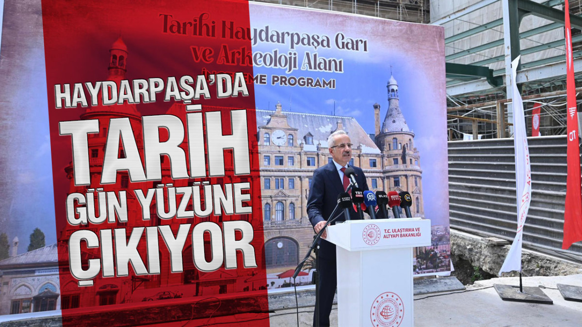 Haydarpaşa Garı sahasında bir de Türkiye ve dünyada bir ilk olacak arkeopark projesi hayata geçirdiklerini belirten Bakan Uraloğlu, “Bu projenin detaylarına inmeden önce size bu projenin nasıl ortaya çıktığından kısaca bahsetmek istiyorum. Bildiğiniz üzere Marmaray’ın boğaz geçişinin 2013 yılında açılmasıyla birlikte Haydarpaşa Garı atıl hale geldi. Çünkü daha önceleri Haydarpaşa’ya kadar gelen trenler buradaki liman üzerinden gemilerle taşınarak İstanbul Boğazı’nı aşıp karşı da Sirkeci’ye geçerek yollarına devam ediyordu. Marmaray ile artık bu duruma gerek kalmadı ve trenlerimiz İstanbul Boğazı’nı kesintisiz bir şekilde Marmaray ile geçmeye başladı. Ulaştırma ve Altyapı Bakanlığı olarak Marmaray projesini hayata geçirirken ise yaptığımız çalışmalarda özellikle Yenikapı, Sirkeci ve Üsküdar istasyon alanlarında önemli tarihi buluntularla karşılaştık ve yetkili kurumlarla iletişime geçtik. İstanbul’un o zamanlarda bilinen tarihi 2 bin 500 yıl iken Yenikapı’daki Marmaray kurtarma kazıları sırasında ortaya çıkan 8 bin 500 yıllık ayak izleri ortaya çıktı. Yine, Bizans İmparatoru Theodosius tarafından yaptırılan dev liman yapısı ve onlarca gemi iskeletiyle çeşitli tarihi buluntular da ortaya çıktı.” dedi.