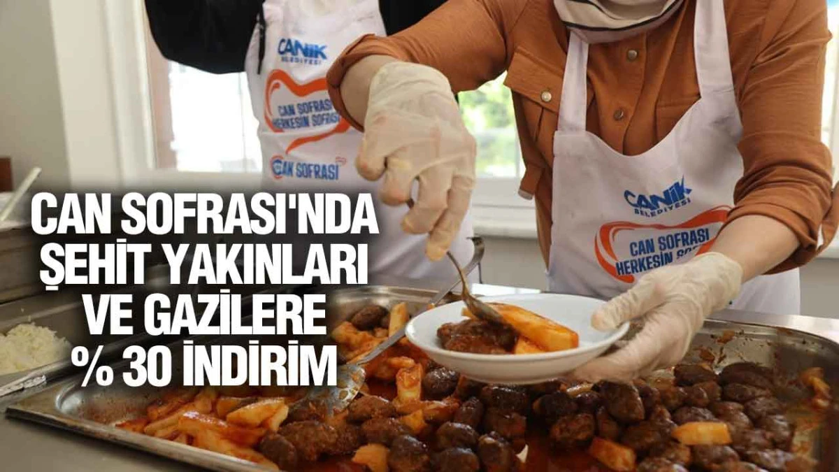 Canik Belediyesi'nin Can Sofrası'nda şehit yakınları, gaziler ve gazi ailelerine yüzde 30 indirim uygulaması başladı.