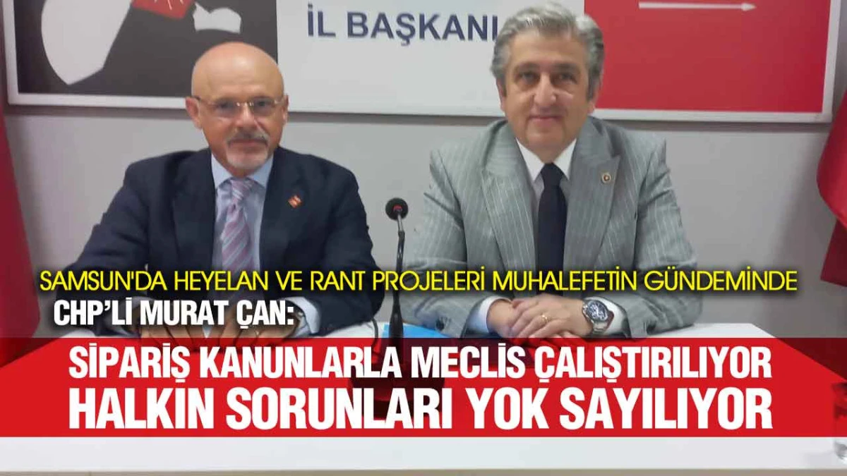 CHP Samsun Milletvekili Murat Çan, yaptığı basın açıklamasında iktidarın meclis faaliyetlerini halkın değil, çıkar gruplarının talepleri doğrultusunda yürüttüğünü belirterek, "Sipariş kanunlar için gelip oy veriyorlar, emekli, çiftçi, gençler için verilen teklifler ise reddediliyor" dedi.