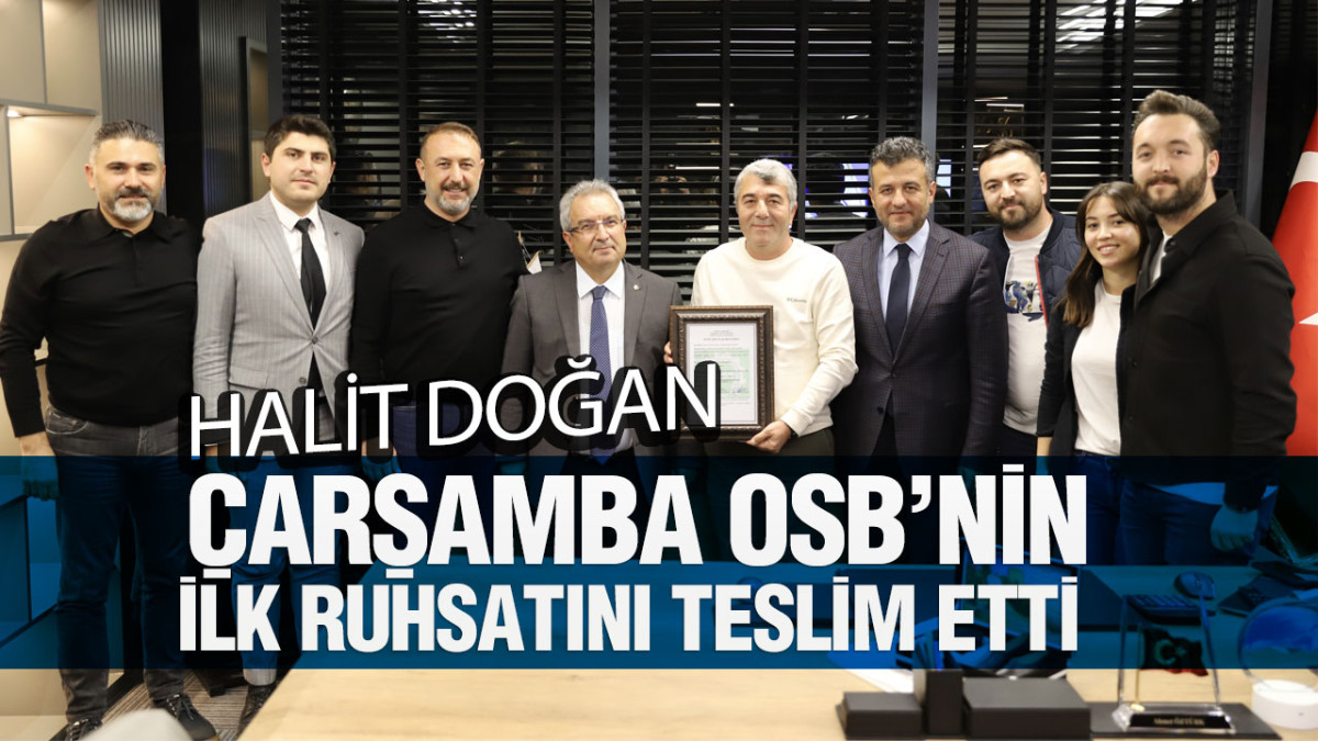Çarşamba Belediye Başkanı Halit Doğan, “Çarşamba'mızdan tüm dünyaya hizmet götüren; Çarşamba Organize Sanayi Bölgemizdeki Çarsan Treyler fabrikamızın ruhsatını takdim ettik. OSB’mizdeki ilk iş yeri açma ve çalışma ruhsatını da böylelikle vermiş olduk. Firma sahibimiz Ahmet Öztürk ve kıymetli oğullarına; Kaymakamımız Doç. Dr. Şükrü Yıldırım, Çarşamba Ticaret ve Sanayi Odası Başkanımız Ayhan Sonkaya ve Organize Sanayi Bölgesi Müdürümüz Mehmet Dalgıç ile birlikte hayırlı olsun dileklerimizi iletip firma ruhsatını takdim etmenin mutluluğunu yaşıyoruz. Çarşamba Organize Sanayi Bölgemiz, tüm paydaşlarımız ile beraber büyük emek verdiğimiz, sadece Çarşamba’mız, Samsun’umuz için değil ülke ekonomimize de büyük katkı sağlayacak bir yatırım olarak hayata geçti. Hem Tekstilkent hem Çarşamba OSB ile birlikte Çarşamba’mız göç alan, üretimin merkezi olan bir kent haline gelecektir. Çarşamba OSB’mizdeki tüm fabrikalar tamamlandığında 7 bin 500 kişiye iş olanağı sağlamış olacağız. Tekstilkent’imizde de 2 bin 500 kişilik bir istihdamdan bahsediyoruz. Üretimin ve sanayinin kenti olma noktasında büyük emekler harcadığımız Çarşamba'mızda; Organize Sanayi Bölgemiz ve Tekstilkent’imiz ile birlikte 10 bin kişiye istihdam olanağı sağlayacak olmanın haklı gururunu yaşıyoruz. Çarşamba’mıza aş ve iş yönüyle önemli kazanımları olacaktır. Kentimize, şehrimize ve milletimize hayırlı olsun” diye konuştu.