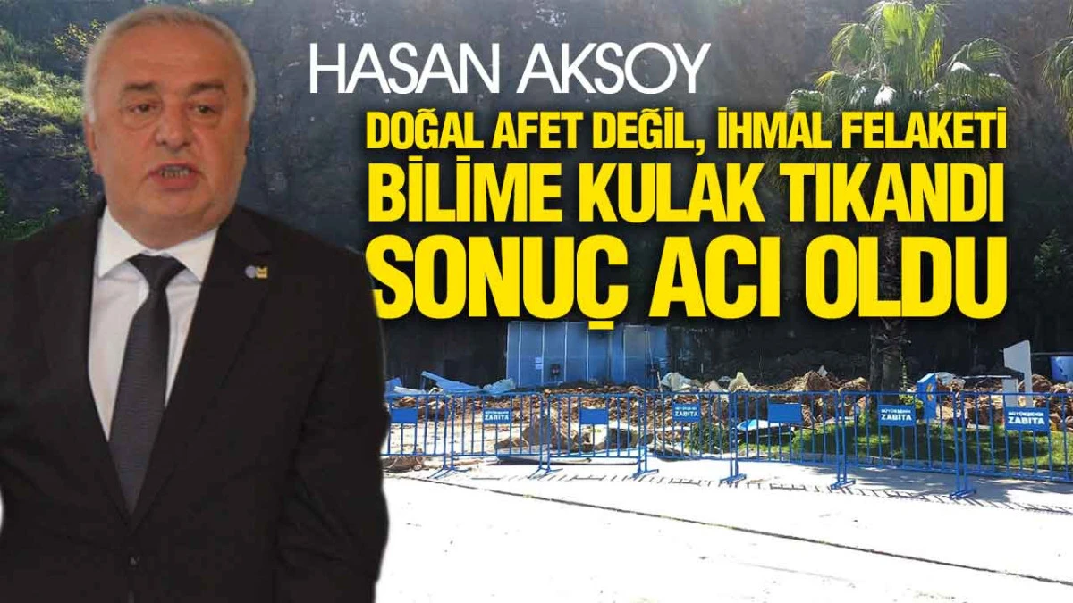 Açıklamasında, plansız şehirleşmeye ve denetimsiz yapılaşmaya sert tepki gösteren Aksoy, “Bu felaket, plansız şehirleşmenin, denetimsiz yapılaşmanın ve ‘yapanın yanına kâr kaldığı’ bir düzenin ürünüdür,” ifadelerini kullandı. Bilimsel raporlar ve mühendislik verilerine dayanmadan verilen yapı izinlerinin, insan hayatını riske attığını belirten Aksoy, "Doğa affetmez; gerekli önlemleri almadığınız her yerde bedeli masum vatandaşlar öder" dedi.