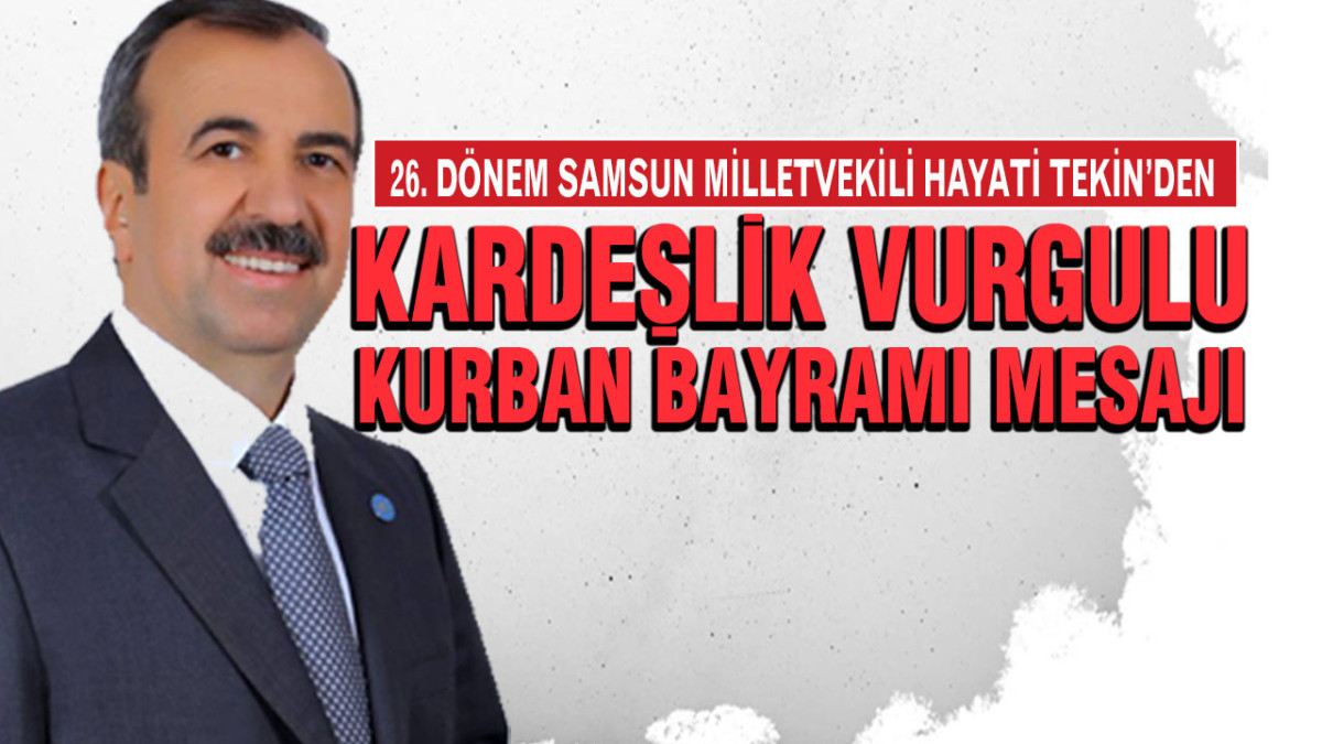 Samsun 26. Dönem Milletvekili Hayati Tekin, Kurban Bayramı dolayısıyla bir kutlama mesajı yayımladı. Tekin, mesajında bayramın birlik, beraberlik ve paylaşma ruhunu pekiştirdiğini vurgulayarak, tüm vatandaşların bayramını kutladı.