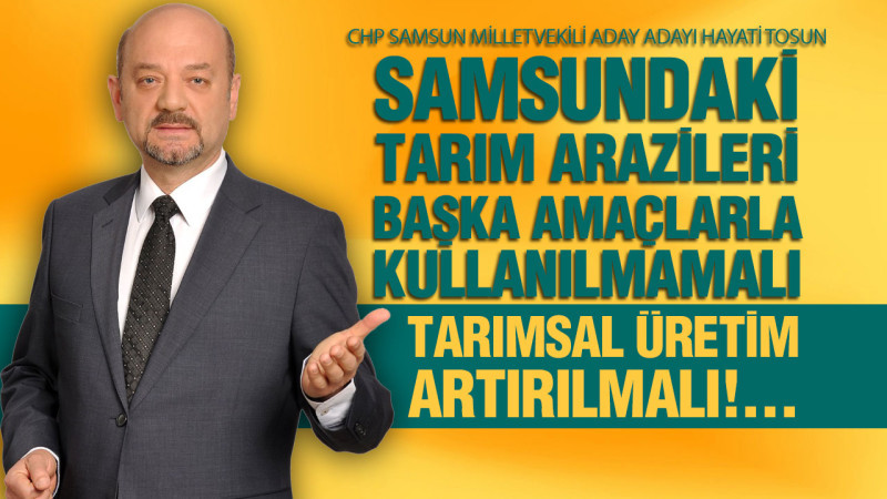 CHP Samsun Milletvekili Aday Adayı Ziraat Mühendisi Hayati Tosun, Tarımsal üretimin Samsun'un olmazsa olmazı olduğunu, tarım arazilerinin başka amaçla kullanılmasının önüne geçilmesi gerektiğini söyledi.