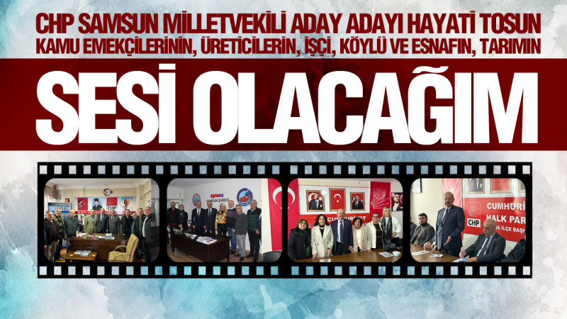 Aday Adaylığı müracaatını yaptıktan sonra seçim çalışmalarına başlayan CHP Samsun Milletvekili Aday Adayı Hayati Tosun, Bafra, 19 Mayıs ilçeleri ve ardından Birleşik Kamu İş ve Eğitim İş Samsun Şubesi'ni ziyaret etti.