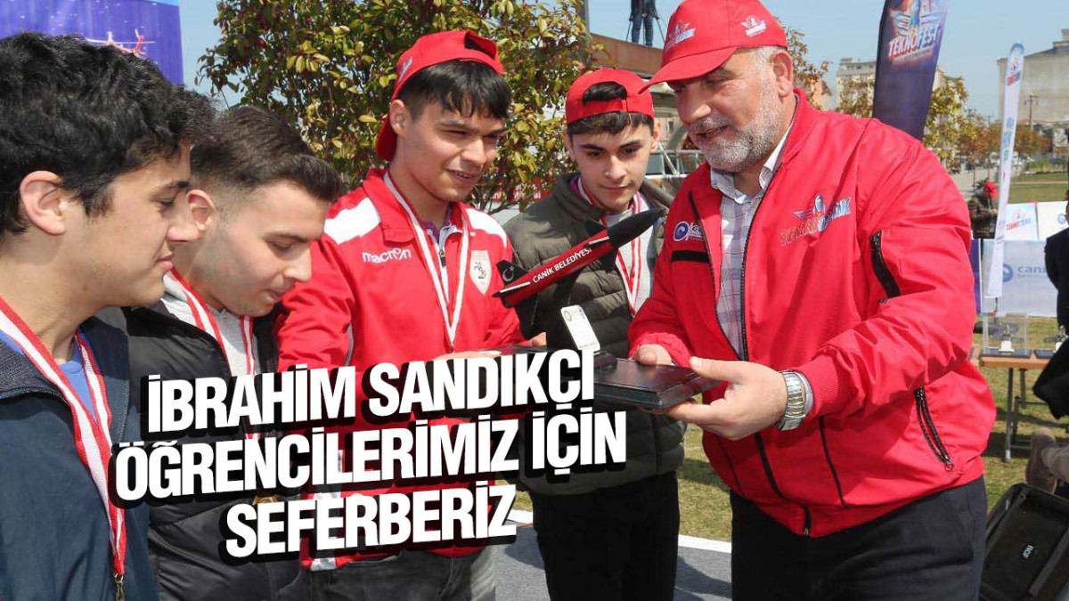 Eğitime yönelik örnek projeleri ilçede hayata geçirdiklerini vurgulayan Başkan İbrahim Sandıkçı, öğrencilerin hazırladıkları TEKNOFEST ve TÜBİTAK projelerine de destek verdiklerini ifade ederek, “Yeteneklerinin farkında olan, fikirleri ve çalışmalarıyla ülkemize ve milletimize katkılar sunacak bireyleri yetiştirme gayesiyle çalışmaya devam ediyoruz. Öğrencilerimiz için seferberiz. Öğrencilerimize eğitim düzeyi ve yaş gruplarına göre hayata geçirdiğimiz projelerle destek olmaya devam ediyoruz” diye konuştu.