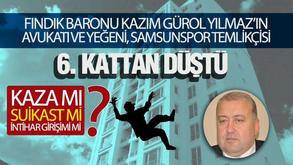 Samsun'da eski Samsunspor Başkanı Kazım Gürol Yılmaz'ın avukatı ve yeğeni Tuğsan Mehmet Çakır'ın Atakum'daki ikamet ettiği evin 6. katından düşerek ağır yaralandığı öğrenildi.
