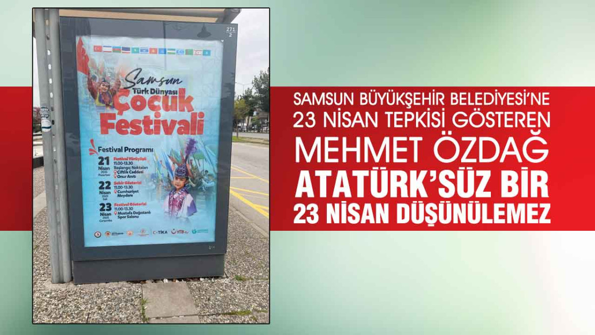 CHP Samsun İl Başkanı Mehmet Özdağ, Samsun Büyükşehir Belediyesinin organize ettiği ‘Türk Dünyası Çocuk Festivali’nin afişinde Ulu Önder Gazi Mustafa Kemal Atatürk’ün adına ve ulusal egemenlik kavramına yer verilmemesine tepki gösterdi. Özdağ, tek adam iradesinin yüceltilmeye çalışıldığına dikkat çekerek “23 Nisan ulusal egemenliktir, millet iradesidir” dedi.