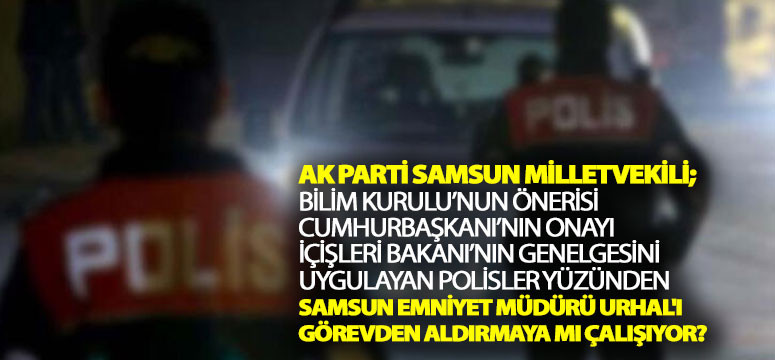Bir AK Parti Samsun Milletvekilinin erkek kardeşinin sokağa çıkma yasağına uymayarak arabasıyla sokağa çıkması üzerine kendisine işlem yapan polisler yüzünden Samsun İl Emniyet Müdürü Ömer Urhal'ı görevden aldırmaya çalıştığı iddia ediliyor.