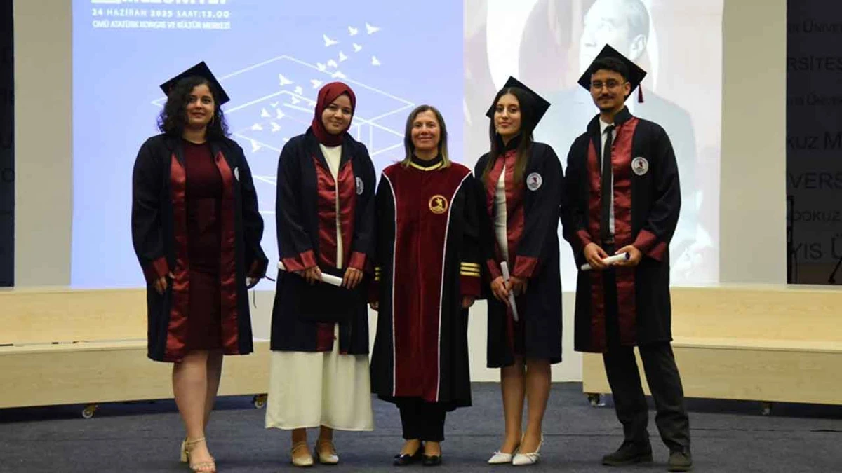 Saygı duruşu ve İstiklal Marşı ile başlayan törende konuşan Rektör Yardımcısı Prof. Dr. Çetin Kurnaz, “Sevgili mezunlarımız, bugün, uzun bir emeğin ve azmin sonucu olarak hayallerinize bir adım daha yaklaştınız. Aldığınız bilgi ve değerlerle sadece mesleğinizin değil, toplumun da mimarları olacağınıza inancım tam. Yolunuz açık, ufkunuz aydınlık olsun. OMÜ ailesi olarak sizlerle gurur duyuyoruz. Başarılarınız daim olsun.” ifadelerini kullandı.