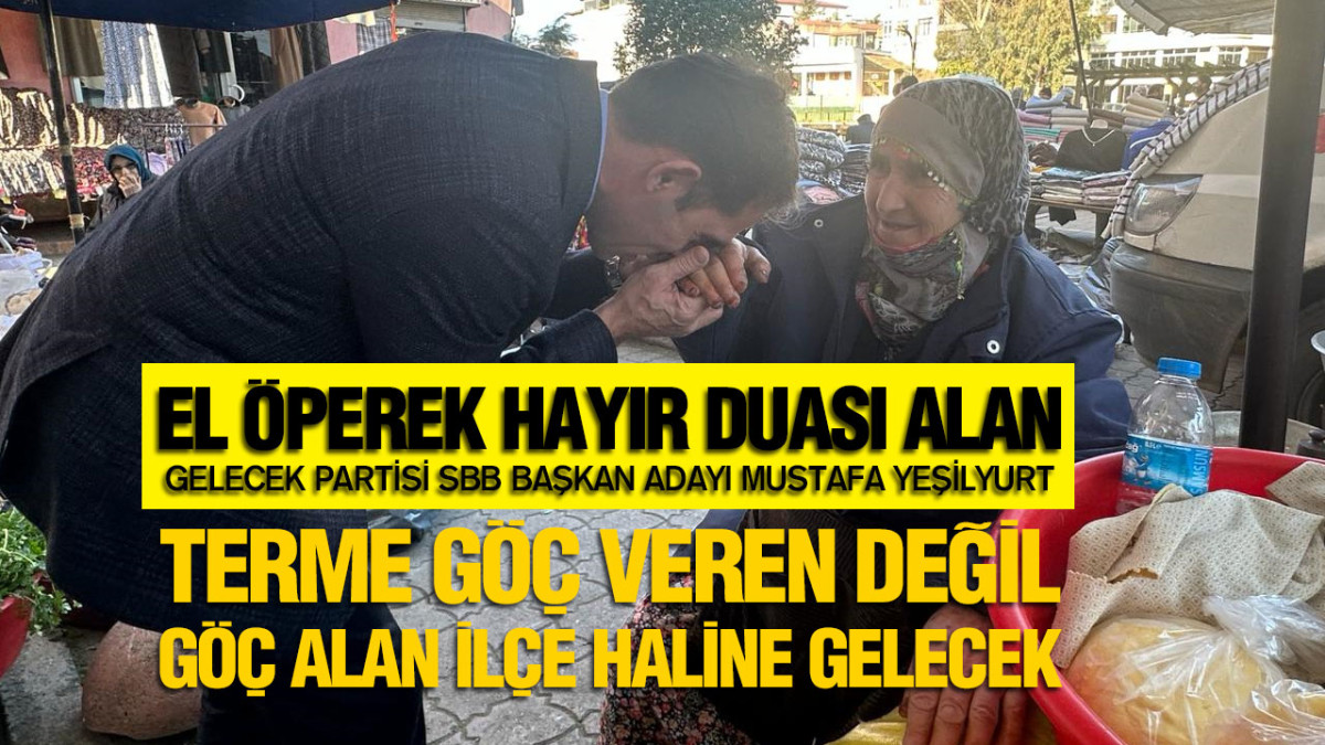 Gelecek Partisi Samsun Büyükşehir Belediye Başkan Adayı Mustafa Yeşilyurt seçim çalışmalarını Gelecek Partisi’nin Terme Belediye Başkan Adayı Hacı Bilal Aslan ile Terme İlçesinde sürdürdü. Halkın sorunlarını dinledi ve çözüm önerilerini Termelilerle paylaştı. Terme esnafını ve pazar yerini ziyaret eden Yeşilyurt, “Her ilçemizin kendine özel sorunları olduğu gibi Terme’nin de kendine has birikmiş sorunlarının varlığını bir kez daha gördük. Özellikle pazar esnafımızın pazaryeri problemleri, altyapı problemleri, köylerimizin yol su ve altyapı problemleri yıllardır çözüm bekleyen sorunların başında gelmektedir.