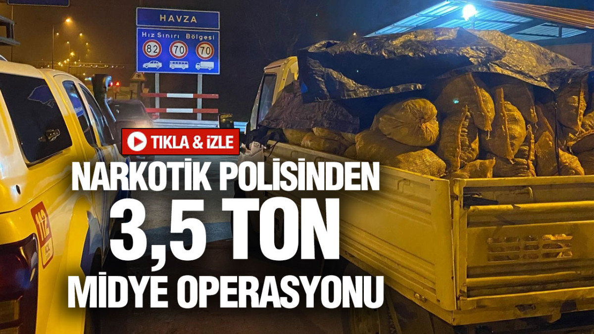Samsun Emniyet Müdürlüğü Narkotik Suçlarla Mücadele Şube Müdürlüğü ve Deniz Limanı Şube Müdürlüğü ekiplerinin Havza'da gerçekleştirdiği operasyonda 3,5 ton kara kıllı midye ele geçirildi.