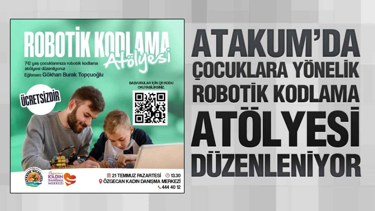 Atakum Belediyesi Özgecan Kadın Danışma Merkezinde, çocuklara yönelik robotik kodlama atölyesi gerçekleştirilecek. Çocuklara dijital okuryazarlık becerisi kazandırmak amacıyla düzenlenen etkinlik, 21 Temmuz Pazartesi saat 13.30’da başlıyor.