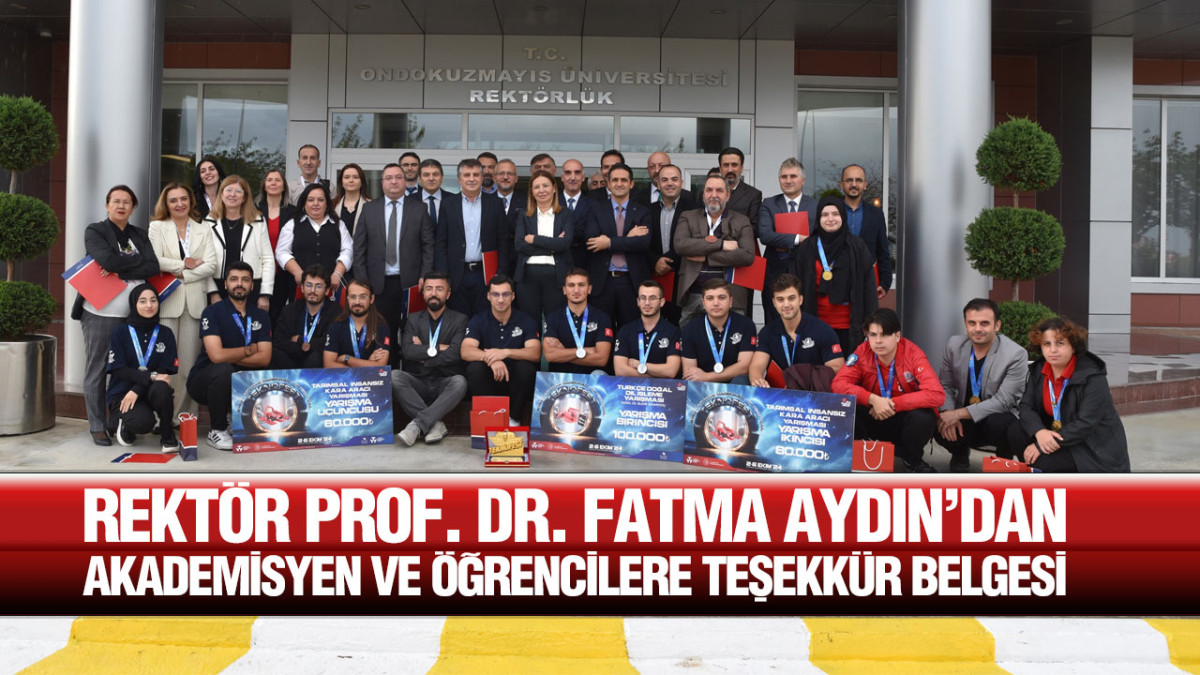 Rektör Prof. Dr. Fatma Aydın’dan Akademisyen Ve Öğrencilere Teşekkür Belgesi