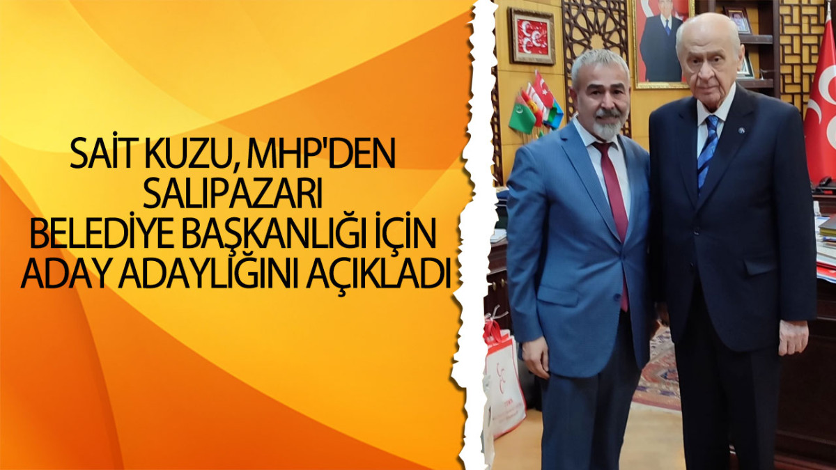Kuzu, yerel seçimler için aday adaylığı başvurusunu MHP Genel Merkezine yaparak, MHP Genel Başkanı Devlet Bahçeli’yi ve Hukuk ve Seçim işlerinden sorumlu Feti Yıldız'ı makamında ziyaret etti. Ankara'da MHP Genel Başkan Yardımcısı Sadir Durmaz'a başvuru evraklarını teslim eden Kuzu, yaptığı açıklamada, "31 Mart 2024 yerel seçimlerinde Milliyetçi Hareket Partisi belediye başkan aday adaylığı başvurumuzu genel başkan yardımcısı sayın Sadir Durmaz beyefendiye ilettik. İlçemize hayırlı olsun. Allah utandırmasın" şeklinde konuştu. Salıpazarı'nda siyasi arenada önemli bir gelişme yaşandı. Sait Kuzu'nun MHP çatısı altında aday adaylığı başvurusu, ilçe siyasetinde heyecan yaratırken, ilçe halkı ve partililer arasında olumlu bir yankı buldu. Salıpazarı halkı, Kuzu'nun liderliğinde ilçenin daha da gelişeceğine inanarak, aday adayına destek mesajları ile karşılık verdi. 31 Mart 2024'te gerçekleşecek seçimler öncesi Salıpazarı, bu siyasi hamlenin etkilerini değerlendirecek gibi görünüyor.