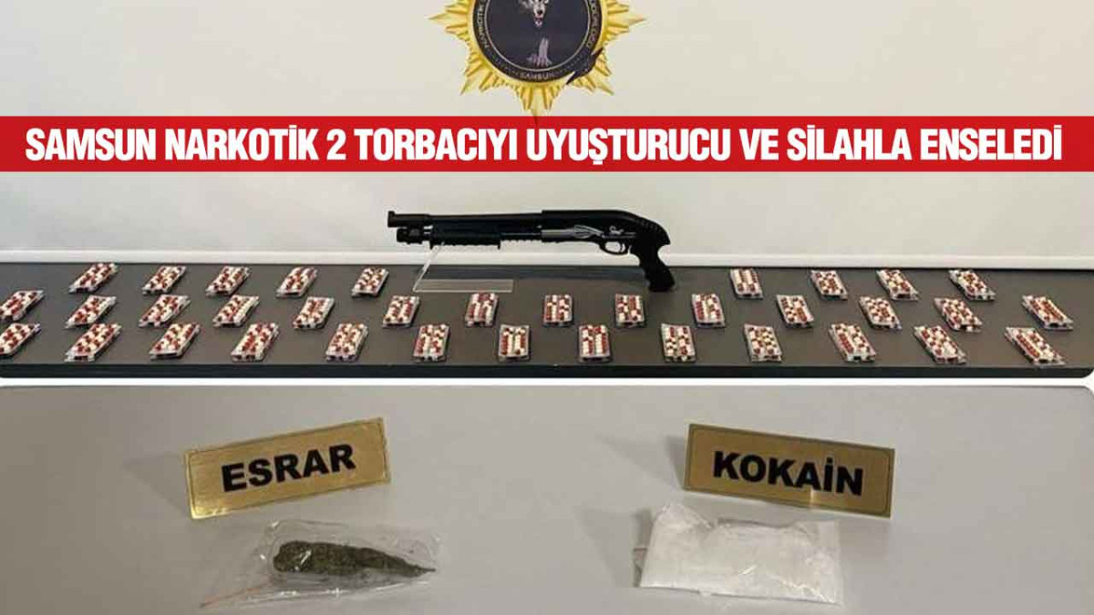 Samsun Emniyet Müdürlüğü NSM Şube Müdürlüğü ekipleri tarafından uyuşturucu ticareti yapan ve kullanan şahıslara yönelik gerçekleştirilen çalışmalarda uyuşturucu ve silah ele geçirildi. Operasyon kapsamında, 2 torbacı 1022 adet sentetik ecza, 1 adet pompalı tüfek, 10,20 gram kokain ve 3,36 gram esrar ele geçirildi. Yakalanan 2 şahıs hakkında adli işlem başlatıldı.