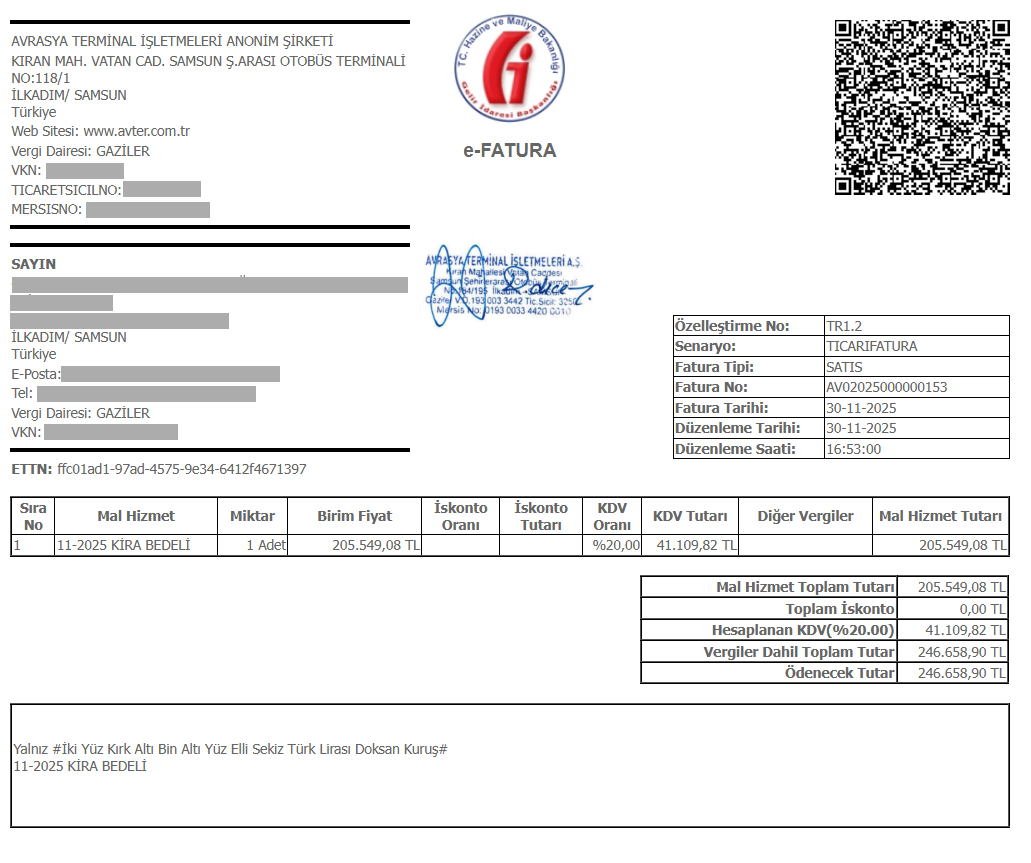 Samsun Yusuf Ziya Yılmaz Şehirlerarası Otobüs Terminali’nde faaliyet gösteren yazıhane esnafı, son dönemde kendilerine tebliğ edilen kira bedelleri karşısında isyan bayrağını çekti. Türkiye’nin en büyük şehirlerinde bile kira bedelleri makul seviyelerdeyken, Samsun’da bir yazıhane için 246 bin 658 TL tutarında kira faturası kesildiği belgelendi.