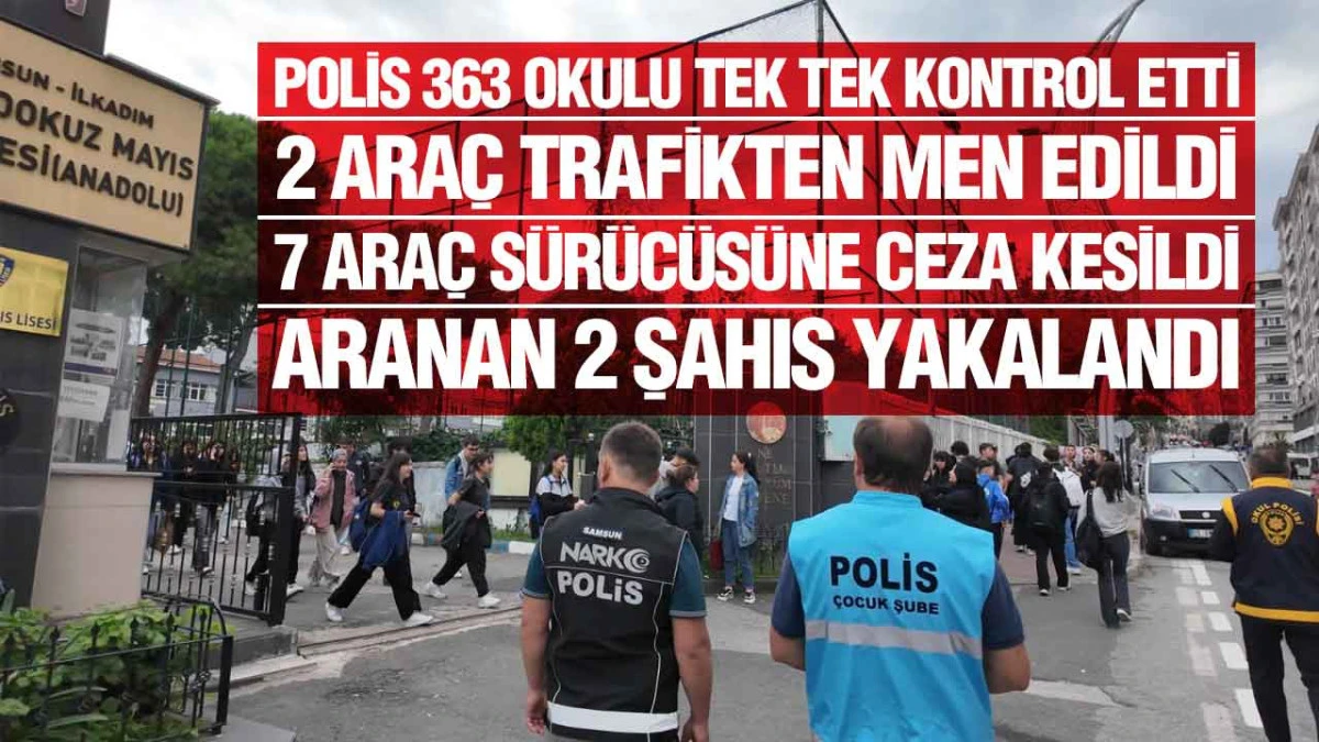 Samsun’da İl Emniyet Müdürlüğü ekipleri okul çevreleri ve servis araçlarında denetim yaptı. 363 okul kontrol edilirken, 13 bin TL para cezası kesildi, 2 araç trafikten men edildi.