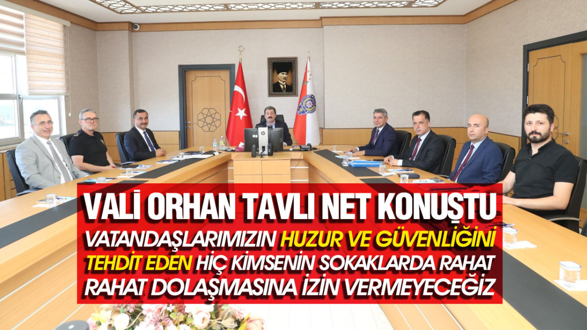 Samsun Huzur ve Güvenlik Toplantısında konuşan Vali Orhan Tavlı, "Vatandaşlarımızın huzur ve güvenliğini tehdit eden hiç kimsenin sokaklarda rahat rahat dolaşmasına izin vermeyeceğiz" dedi.