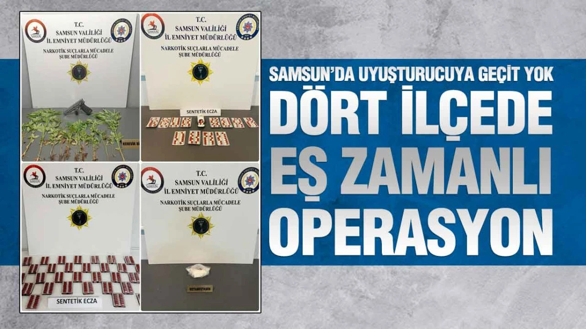 Samsun polisi, dört ilçede eş zamanlı düzenlediği operasyonlarda çok sayıda uyuşturucu madde ele geçirdi. 4 kişi hakkında adli işlem başlatıldı.