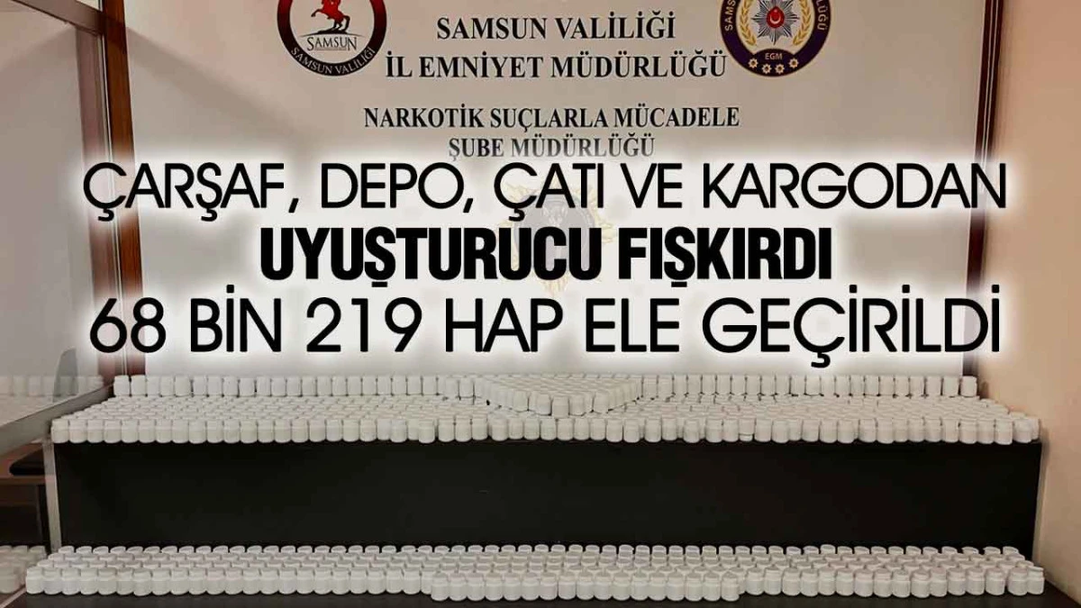 Samsun polisi, gençleri zehirlemeye çalışan uyuşturucu tacirlerine büyük darbe vurdu. Canik’te düzenlenen operasyonda farklı noktalarda gizlenen 68 bin 219 adet sentetik ecza hap bulundu.