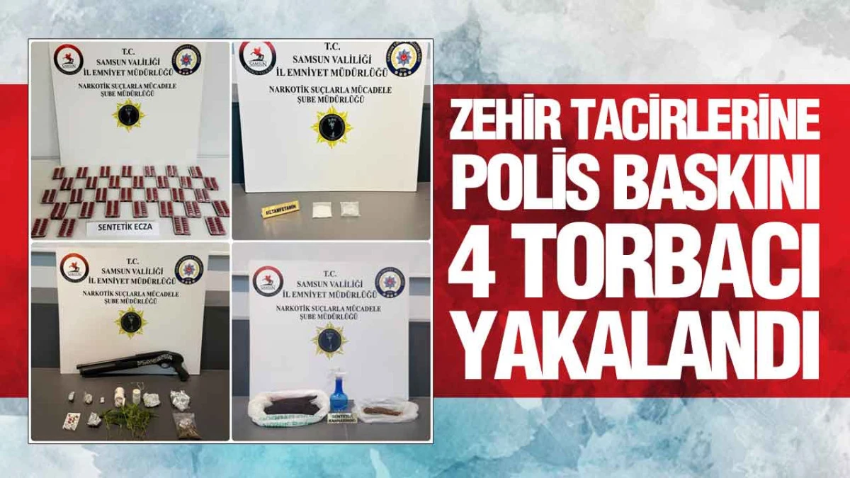 Samsun’da üç ilçede düzenlenen eş zamanlı uyuşturucu operasyonlarında çok sayıda madde ele geçirildi, 4 şüpheli gözaltına alındı. Emniyet yetkilileri, “Uyuşturucuyu tek tek yok edeceğiz” mesajı verdi.