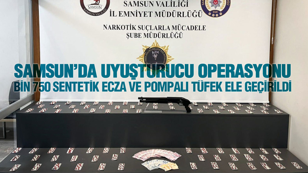 Samsun İl Emniyet Müdürlüğü ekiplerinin yaptığı titiz ve kapsamlı çalışmalar sonucunda, uyuşturucu ticareti yaptığı tespit edilen A.K. (27) isimli şahsın ikametinde düzenlenen operasyonda Bin 750 adet sentetik ecza, 1 adet pompalı tüfek ve uyuşturucu madde ticaretinden elde edildiği değerlendirilen 21 Bin 600 TL nakit para ele geçirildi.
