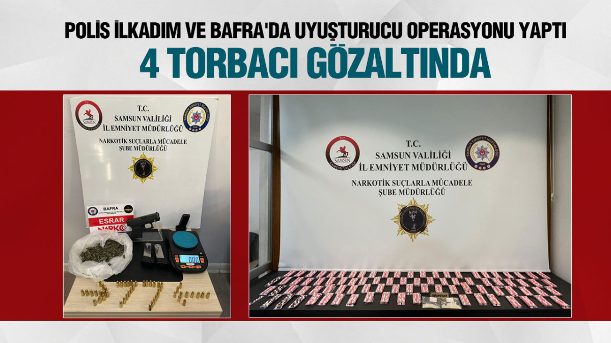 Samsun Emniyet Müdürlüğü Narkotik Suçlarla Mücadele Şube Müdürlüğü polisler Samsun'un İlkadım ve Bafra İlçesi'nde uyuşturucu operasyonu yaptı. Yapılan operasyonlar çerçevesinde 4 torbacı gözaltına alındı.