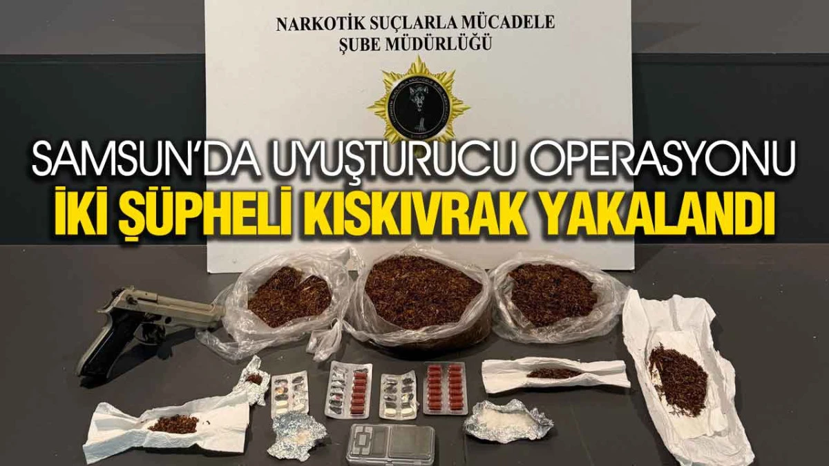 Samsun'da düzenlenen uyuşturucu operasyonunda 1 kilo 35 gram sentetik kannabinoid başta olmak üzere çok sayıda uyuşturucu madde ele geçirildi. Gözaltına alınan 2 şüpheli hakkında adli işlem başlatıldı.
