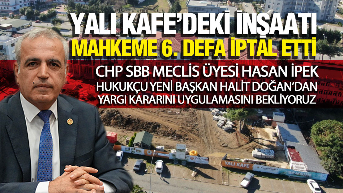Samsun Atakum İlçesinde bulunan Yalı Kafe’nin yıkılarak yerine yapılmak istenen Millet Kıraathanesi için mahkeme 6. defa yürütmeyi durdurma kararı verdi. CHP SBB Meclis Üyesi Hasan İpek yeni Başkan Halit Doğan'a Yargı kararlarına uyması konusunda çağrıda bulundu.