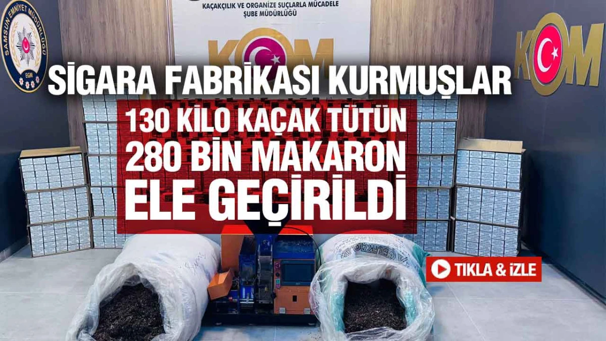 Samsun’un Çarşamba ilçesinde düzenlenen kaçakçılık operasyonunda 280 bin adet makaron, 130 kilogram kaçak tütün ve sigara sarma makinesi ele geçirilirken, 1 şüpheli hakkında adli işlem başlatıldı.