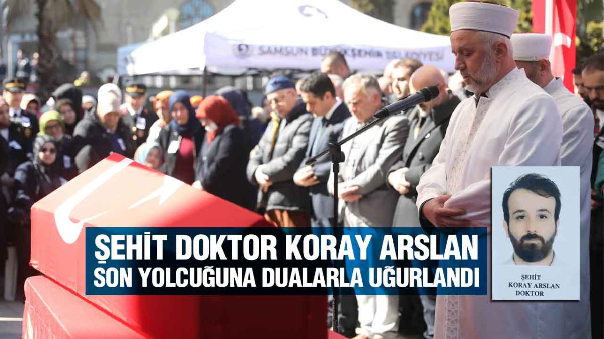 Şehit Doktor Koray Arslan için Samsun Büyük Cami’de cenaze töreni düzenledi. Burada şehit doktorun annesi Bahar, babası Recep ile kardeşleri Burak ve Yılmaz Arslan büyük üzüntü yaşarken, eşi Elena Arslan da gözyaşlarını tutamadı. Şehidin naaşı öğle namazını müteakip kılınan cenaze namazının ardından Tekkeköy ilçesi Çınaralan Mezarlığı’nda gözyaşları arasında toprağa verildi.