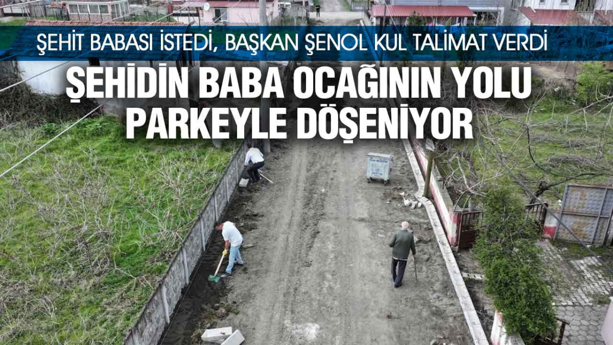 Terme’nin Yalı Mahallesi’nde yaşayan şehit ailesinin yol talebine Terme Belediye Başkanı Şenol Kul kayıtsız kalmadı. Başkan Kul’un talimatıyla şehit Kıdemli Başçavuş Hüseyin Erdal Hüyük’ün baba ocağının mahalle ile bağlantısını sağlayan yolda parke çalışması başlatıldı.