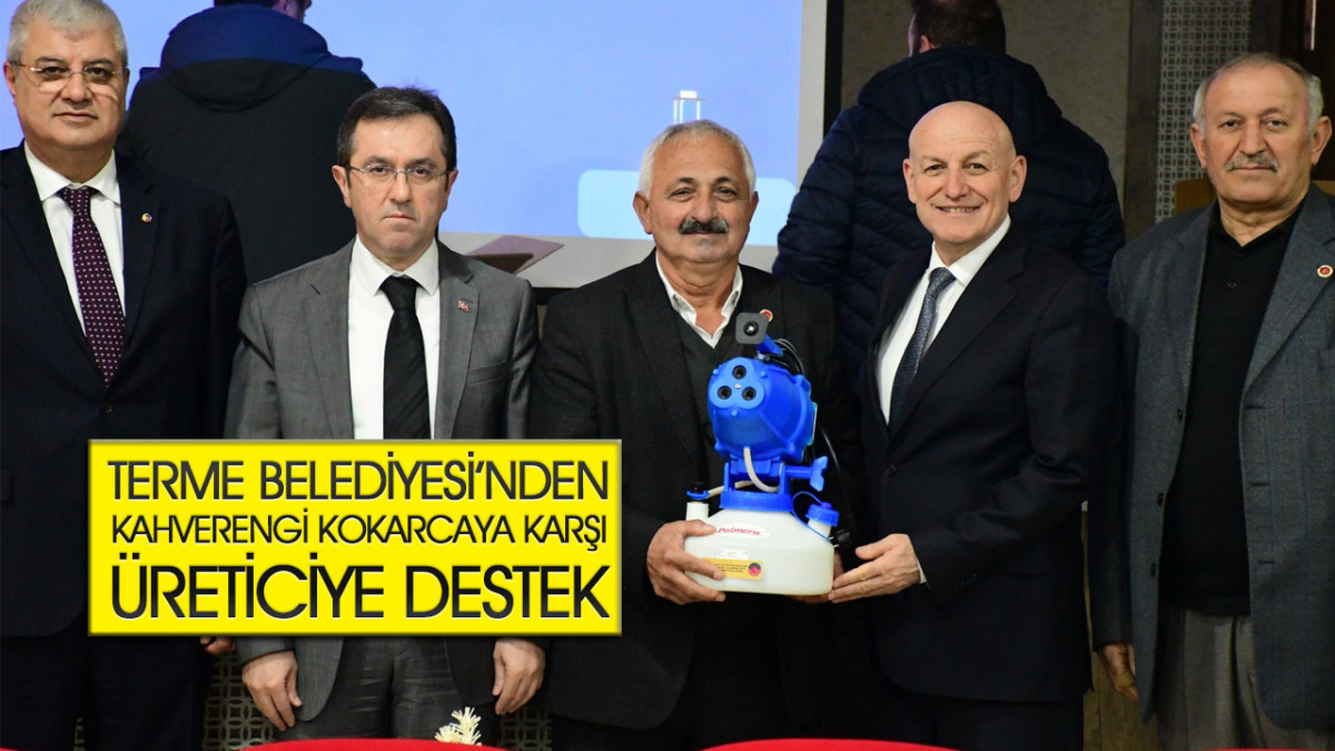 Terme Kaymakamlığı, Terme Belediyesi, Terme İlçe Tarım ve Orman Müdürlüğü, İlçe Sağlık Müdürlüğü, Terme Ticaret ve Sanayi Odası, Terme Ticaret Borsası ve Terme Ziraat Odası, Terme Muhtarlar Derneği, Terme Organik Fındık Üreticileri Birliği işbirliğiyle Terme Halk Eğitim Merkezi Toplantı Salonu’nda düzenlenen programda, kahverengi kokarca zararlısıyla mücadelede kullanılmak üzere mahalle muhtarlarına soğuk sisleme cihazı, biyosidal ilaç ve koruyucu ekipman teslim edildi.