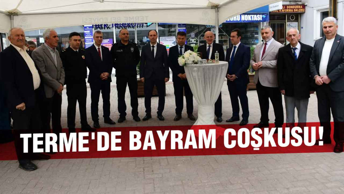 Terme Belediyesi önünde düzenlenen bayramlaşma, Terme Kaymakamlığı ile Terme Belediyesi öncülüğünde gerçekleştirildi. Programda, Terme Kaymakamı Metin Maytalman ve Belediye Başkanı Şenol Kul başta olmak üzere siyasi parti, oda başkanları ve ilçe protokolü Termelilerin bayramını kutladı.