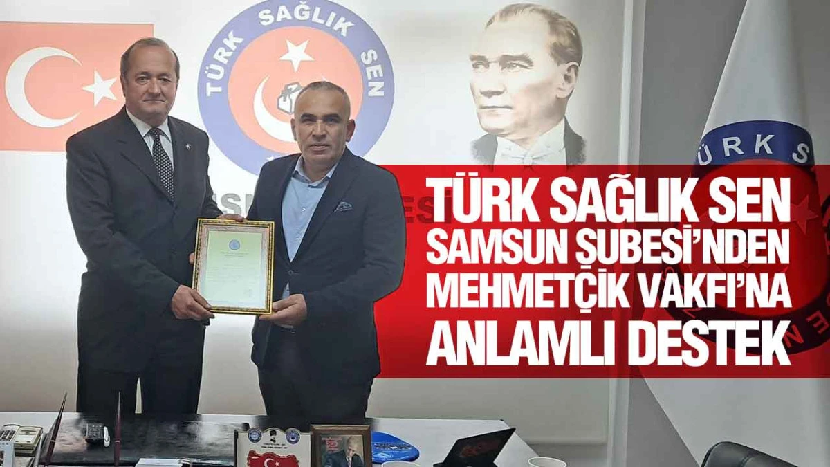Türk Sağlık Sen Samsun Şubesi, Ebe ve Hemşireler Haftası kapsamında TSK Mehmetçik Vakfı’na bağışta bulunarak anlamlı bir farkındalık çalışmasına imza attı; vakıf tarafından teşekkür belgesiyle onurlandırıldı.