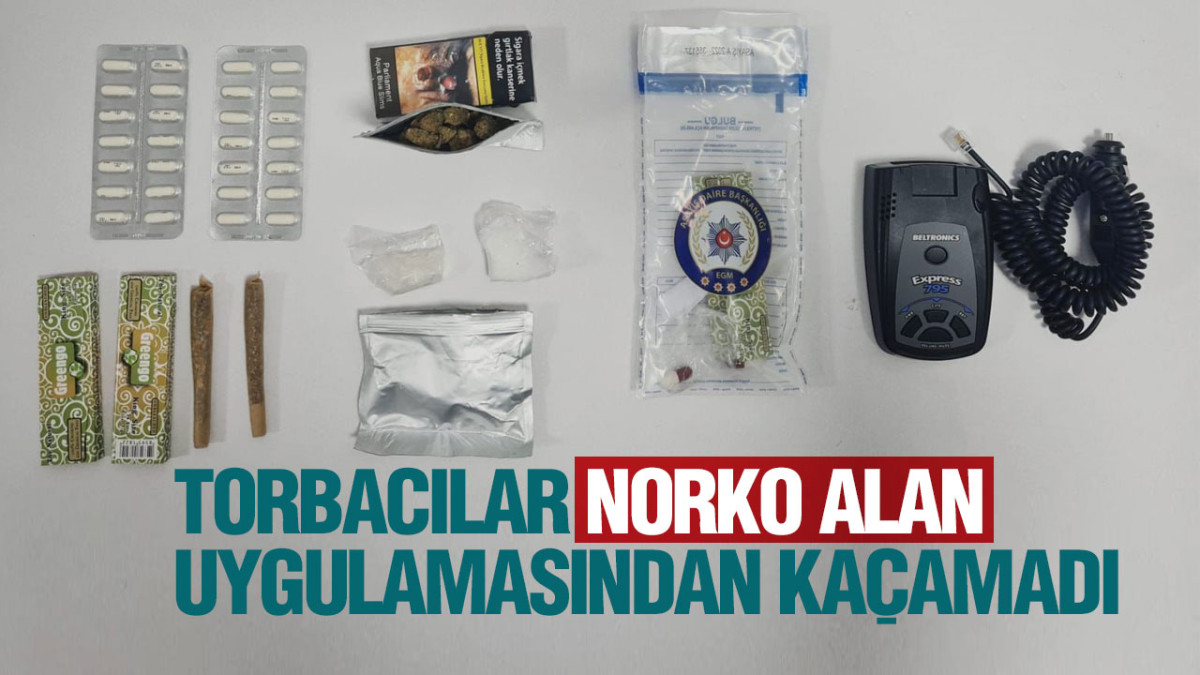 Gerçekleştirilen operasyonda; 3.6 gram içime hazır 2 parça halinde esrar, 0.4 gram esrar, 30 adet sentetik ecza, 8.4 gram skunk narkotik madde, 16.5 gram metamfetamin (2 parça halinde), 1 adet radar tespit cihazı.